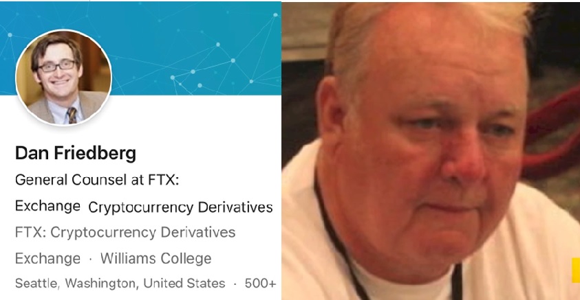 As the scale of the fraud, mounting into the deca-billions, is discovered, we are distracted by the pantomime being played out with SBF and his “gang of 4”. It is all misdirection! The puppet master behind the scenes is Dan Friedberg, FTX “legal Counsel”. While the world is leaked stories of drug fuelled sex orgies at the Bahama penthouse of SBF, Harry Potter Math defect, Caroline Ellison and strange hacks on FTX draining the last remaining value of client funds, we don’t see much about Dan Friedberg. He is back at home scrubbing the internet, destroying all evidence and draining any remaining funds.